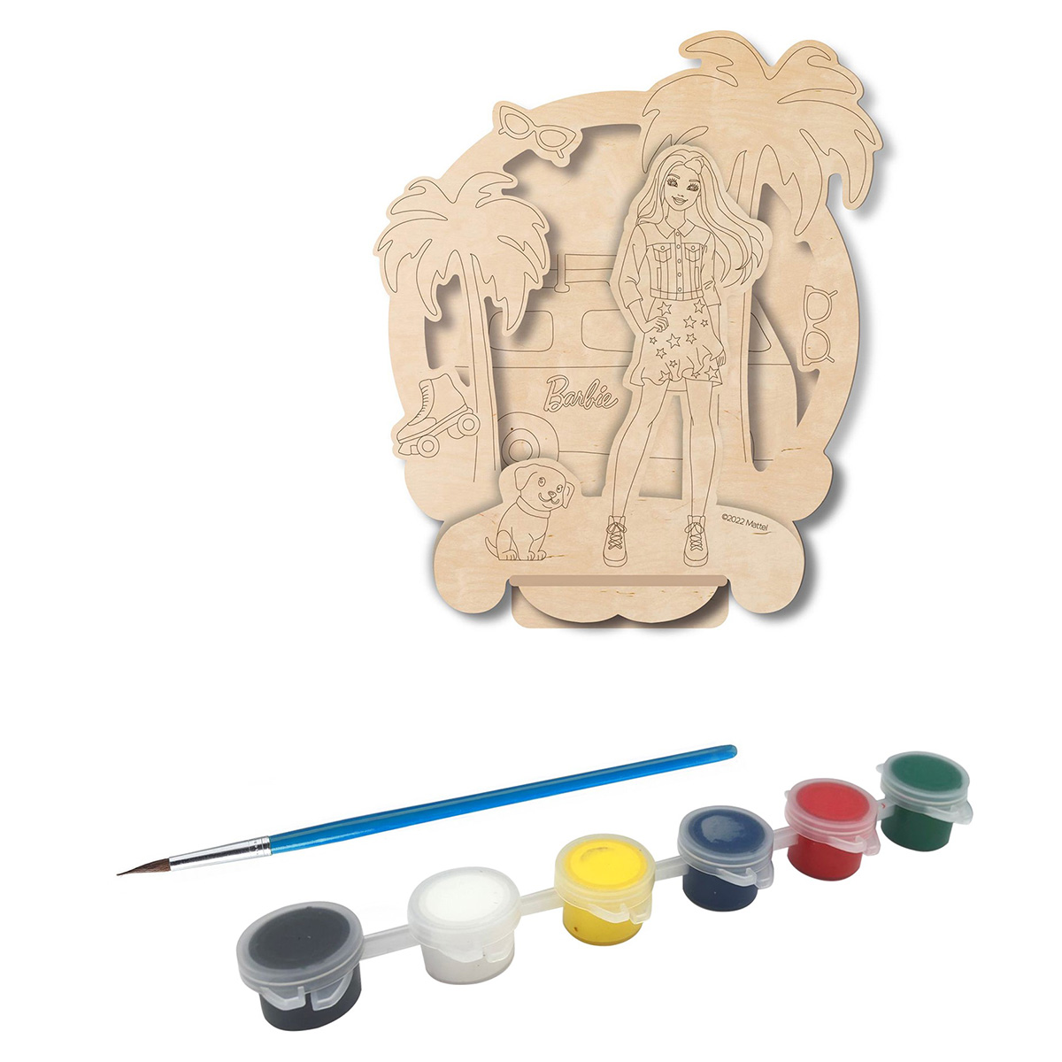Набор для творчества "3D панно из дерева Barbie" для раскрашивания. В комплекте: 4 фигурных слоя из фанеры с нанесением контурного рисунка + 2 детали для создания подставки, краски акрил 6 цветов, кисть. Создание панно развивает творческие способности ребенка, эстетическое восприятие, мелкую моторику. Предназначен для детей от 3 лет.