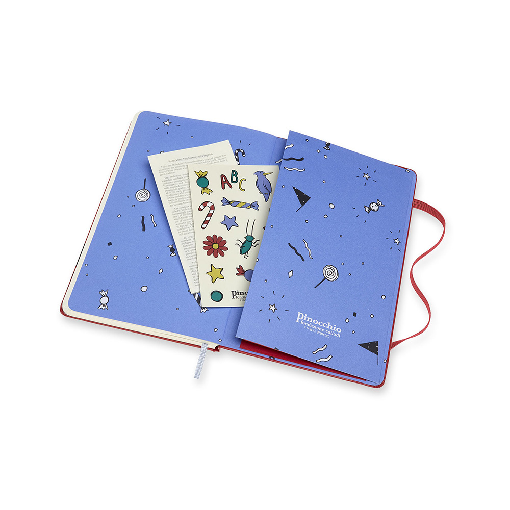 Эта коллекция ограниченного выпуска Pinocchio посвящена классической трогательной истории Карло Коллоди, рассказывающей о злоключениях одной из самых известных в мире кукол. Страница за страницей, Пиноккио демонстрирует нам цену ошибок – будь то в дороге или на странице – и как они приближают нас к тому месту, куда мы хотим попасть. Характеристики: -Твердая обложка на тему ограниченного выпуска Pinocchio -Закругленные углы -Эластичная застежка -Фирменная бумага Moleskine цвета слоновой кости -Лента-закладка в тон -Бумага: 70г/м2, бескислотная, цвета слоновой кости, в линейку -Карточка с историей, с тематическим сообщением -Тематические наклейки -Расширяемый внутренний кармашек сзади -Надпись «In case of loss» на форзаце -Тематическая бумажная лента B-SIDE многократного использования с дополнительными печатными рисунками -Плоская, открывается на 180° -Внутри история Moleskine
