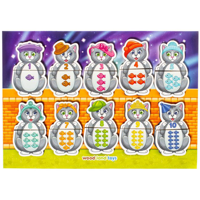 Игровой набор умело познакомит Вашего ребёнка с цифрами, станет отличным помощником в освоении им навыка счёта и решении простых математических действий. Как играть? Перед тем, как начать игру, рассмотрите вместе с ребёнком каждого из котят, обсудите их отличия, а затем разложите их в хаотичном порядке и предложите ребенку найти для каждого свое место путем наложения. Обращайте внимание малыша на то, что котята прячут в себе разное количество рыбок, предлагайте их посчитать. Предложите ребёнку найти нужный домик для каждого котёнка на первой стороне карточки. На обратной стороне карточки расположен второй вариант игры - более сложный. После того, как ребёнок выучил все цифры и освоил навык счёта, предложите ему познакомиться с математическими примерами. Малышу предстоит найти верного котёнка для каждого их примеров. Эта игра поможет вашему ребенку в игровой форме освоить операции сложения, вычитания и сравнения, а тематические детали подарят лишь положительные эмоции! В дополнение к игре в комплект включен набор фигур в виде цифр и математических знаков для дополнительной тренировки полученных математических знаний. Математика - это весело и интересно, если играть вместе с нами!