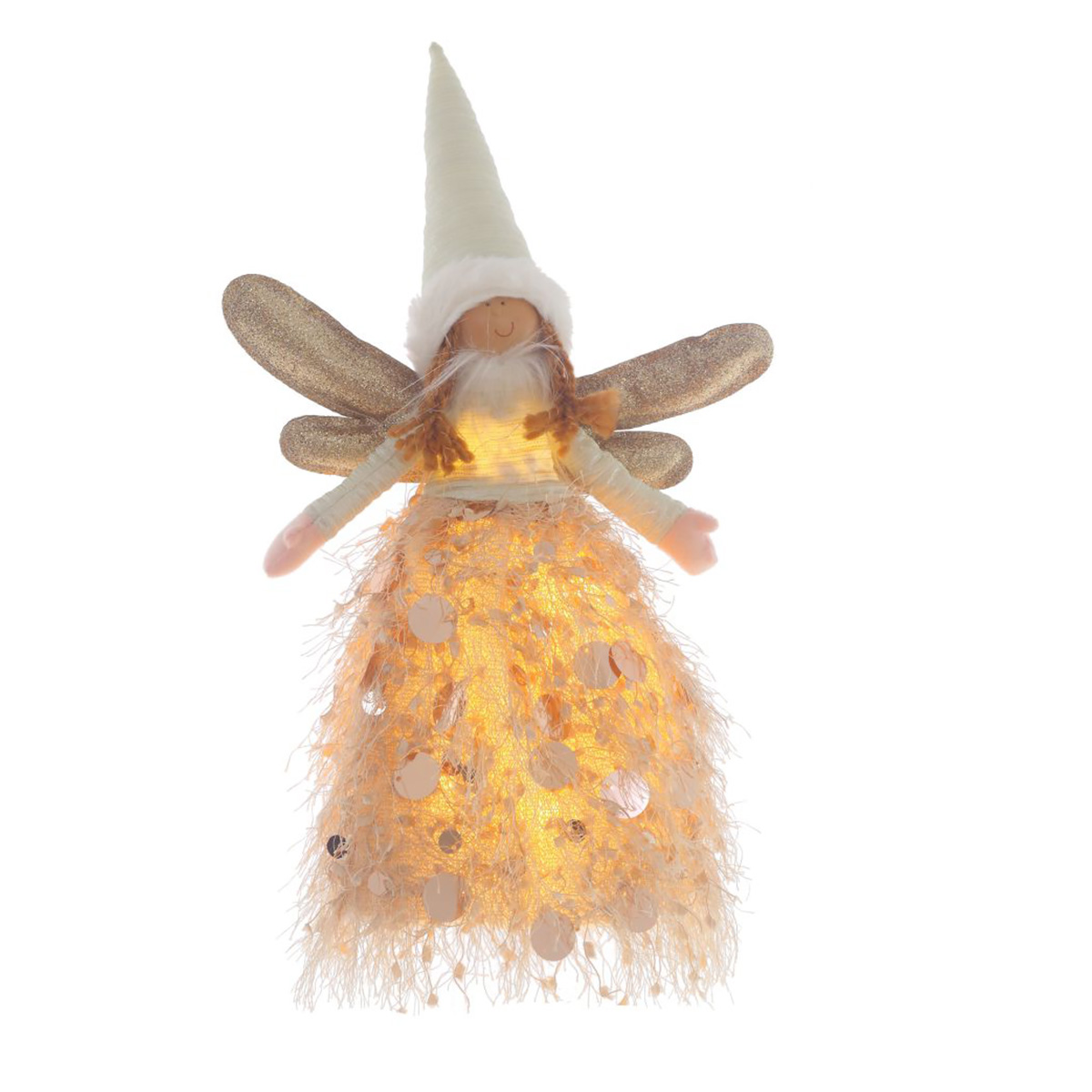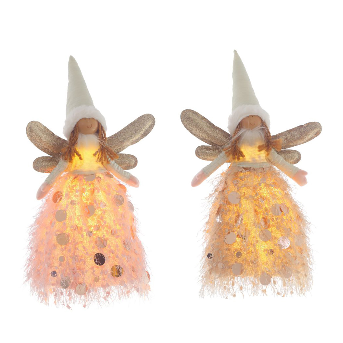 Игрушка набивная "Фея" с подсветкой, изготовлена из текстиля, полимерных материалов. Размер: L20 W10 H34 см. Представлено в двух вариантах. Работает от трех батареек АА .