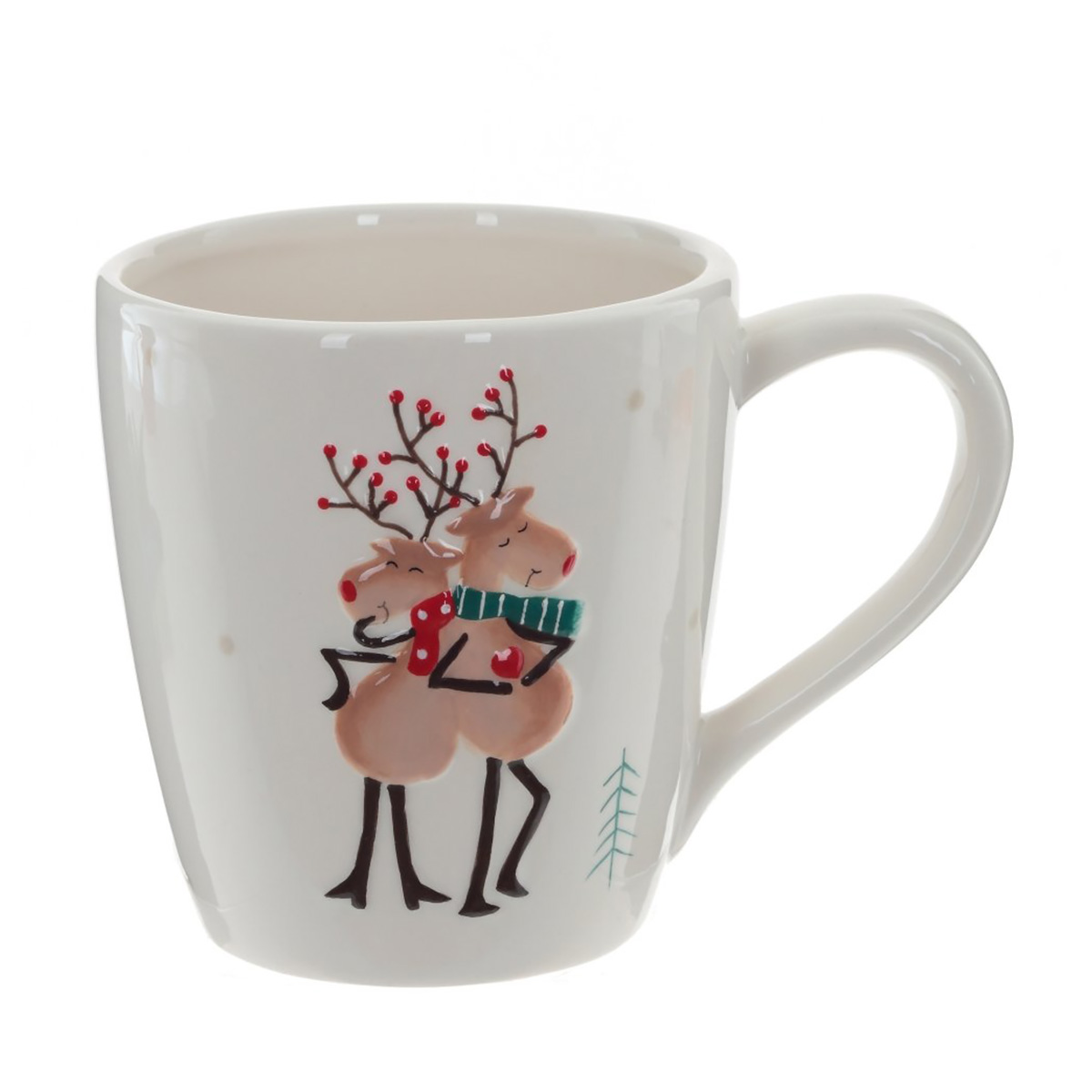 Керамическая кружка с новогодним декором в виде влюбленной пары оленей - это не только украшение праздничного стола, но и замечательный подарок для близких и друзей.