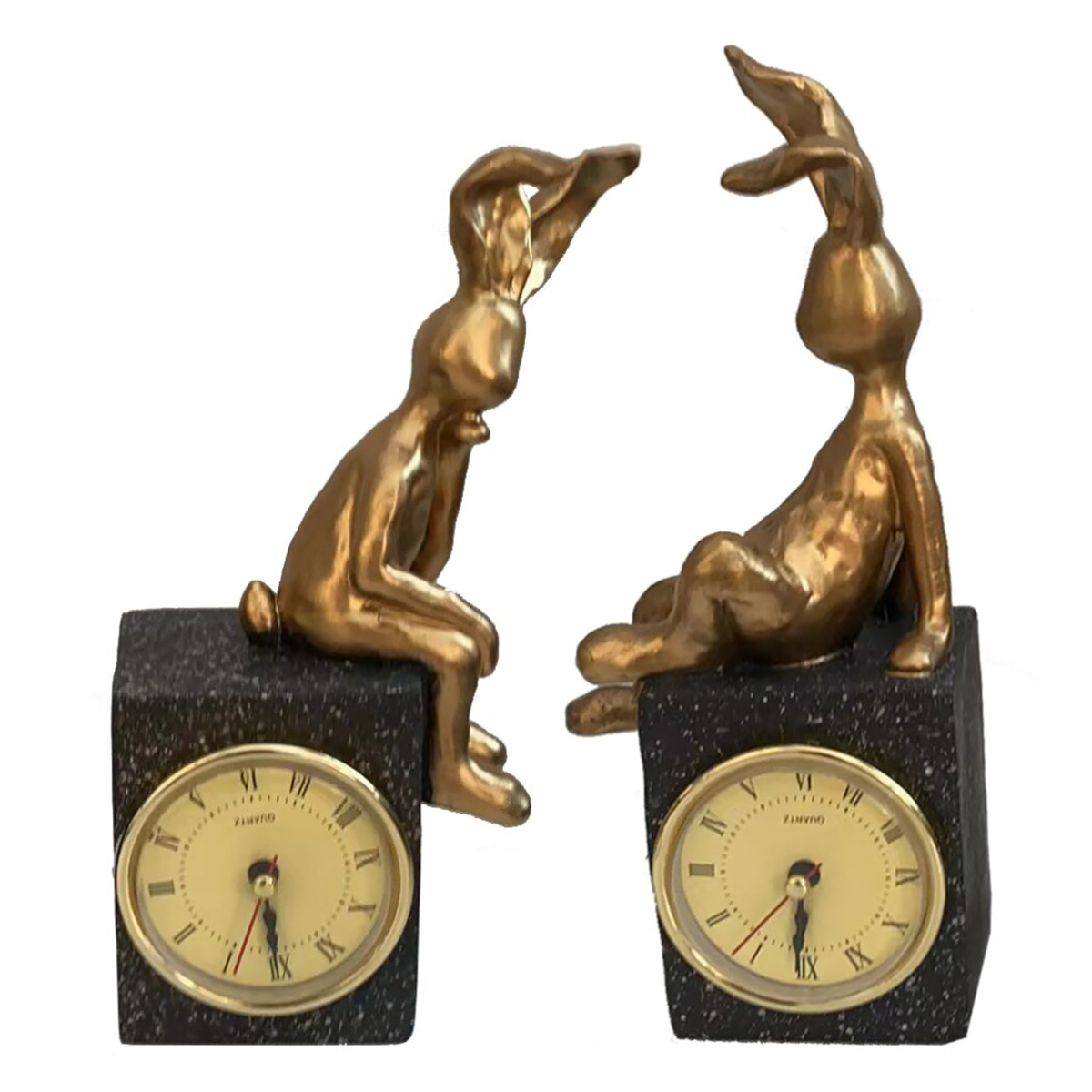 Часы настольные с фигуркой Кролика - символ 2023 года. Разнообразит оформление комнаты, станет отличным дополнением к новогоднему подарку. Представлены в двух вариантах. Работают от одной батарейки ААА .