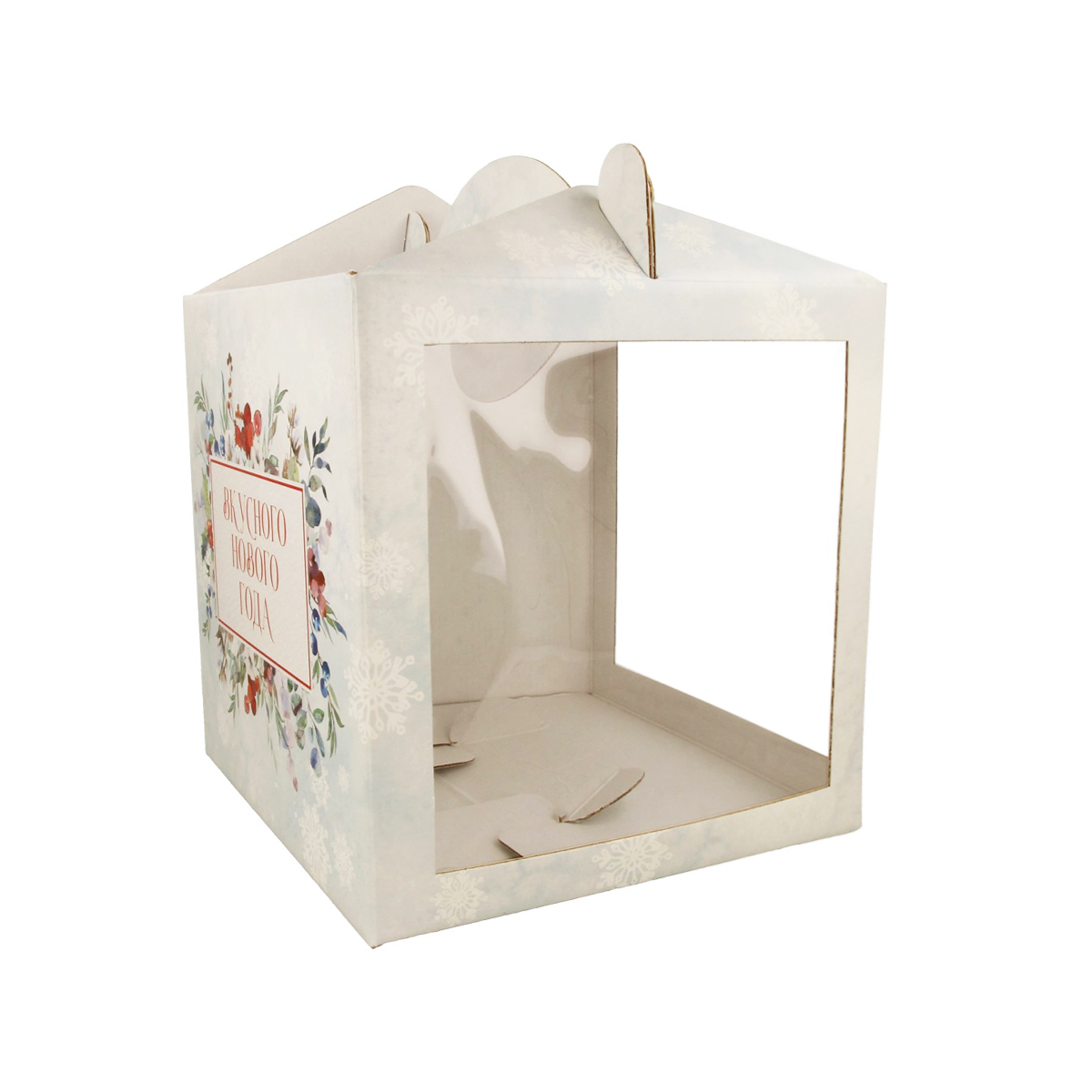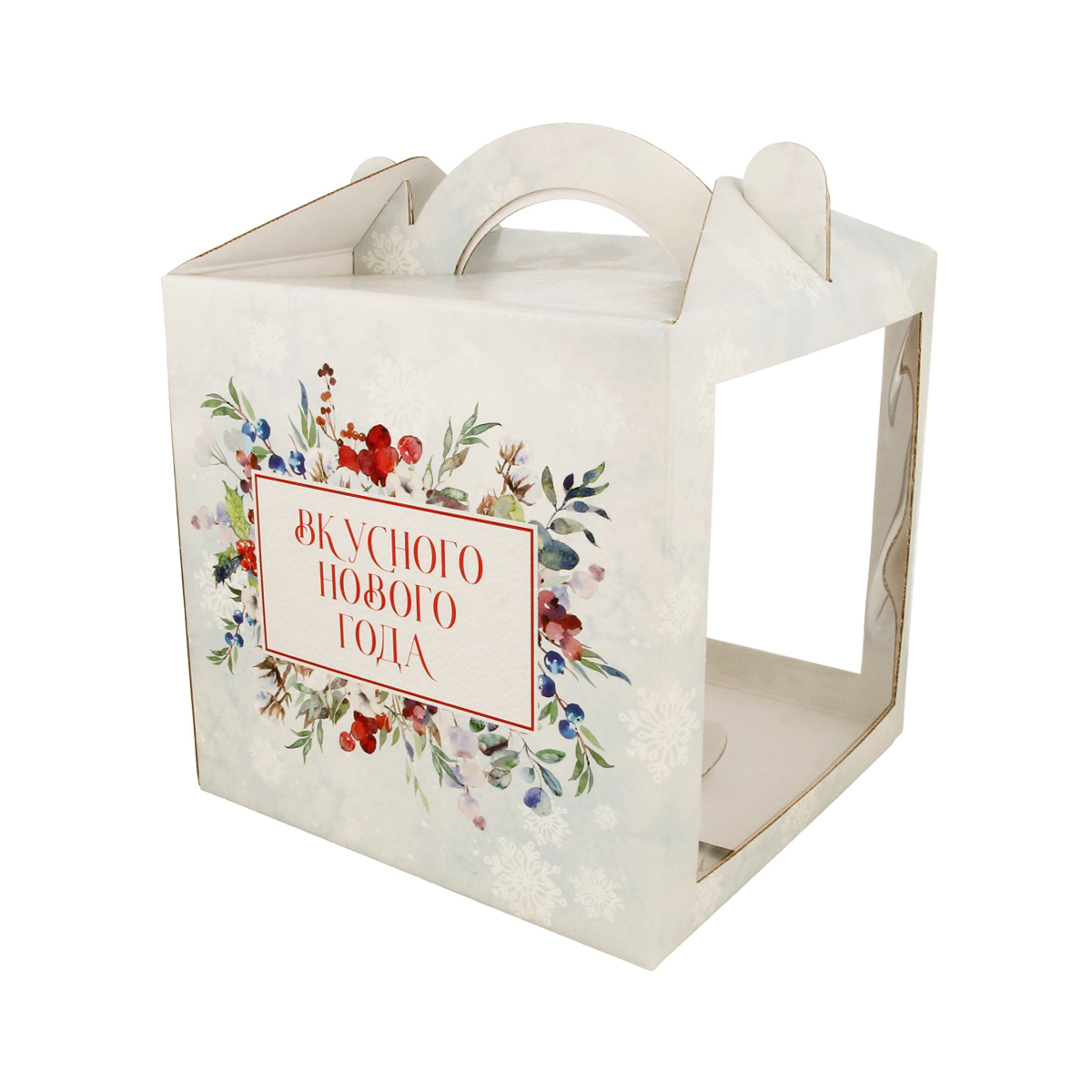 В коробочке «Зимняя акварель» вы сможете перенести свое кондитерское изделие, а для удобства воспользуйтесь ушками-ручками. Диаметр ячейки позволит рассмотреть предстоящий десерт во всей красе. Красочное оформление подарит настоящее ощущение праздника.
