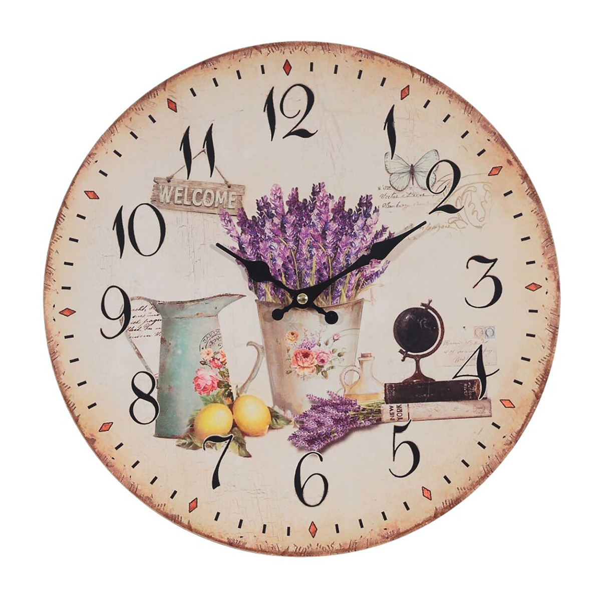 Часы настенные декоративные отлично выглядят в интерьере и дополняют его. Циферблат круглый диаметром 34 см. имеет три стрелки: часовая, минутная, секундная. Цифры - арабские. Механизм: кварцевый. Работают от 1 батарейки типа "АА" [ в комплект не входят].