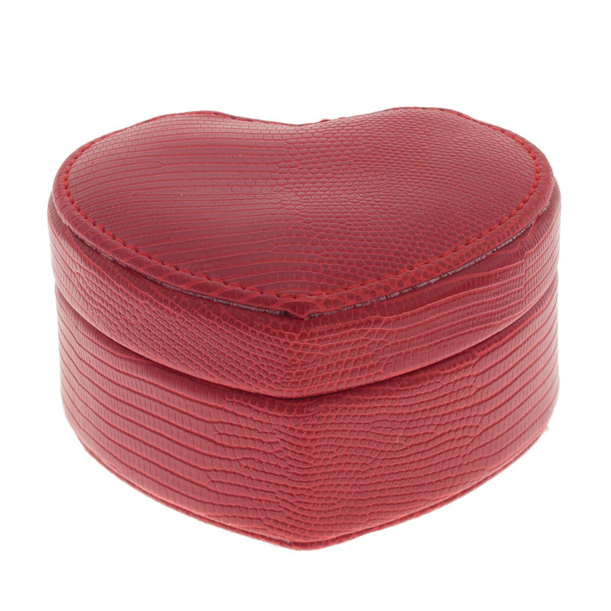Шкатулка для украшений, выполненная в виде сердца, состоит из одного отделения, разделенного на три секции, одна из которых с валиками для колец. Отделка внутренней поверхности бархатистой тканью предохраняет ювелирные изделия от царапин. На внутренней стороне откидной крышки имеется небольшое зеркальце.