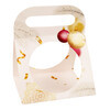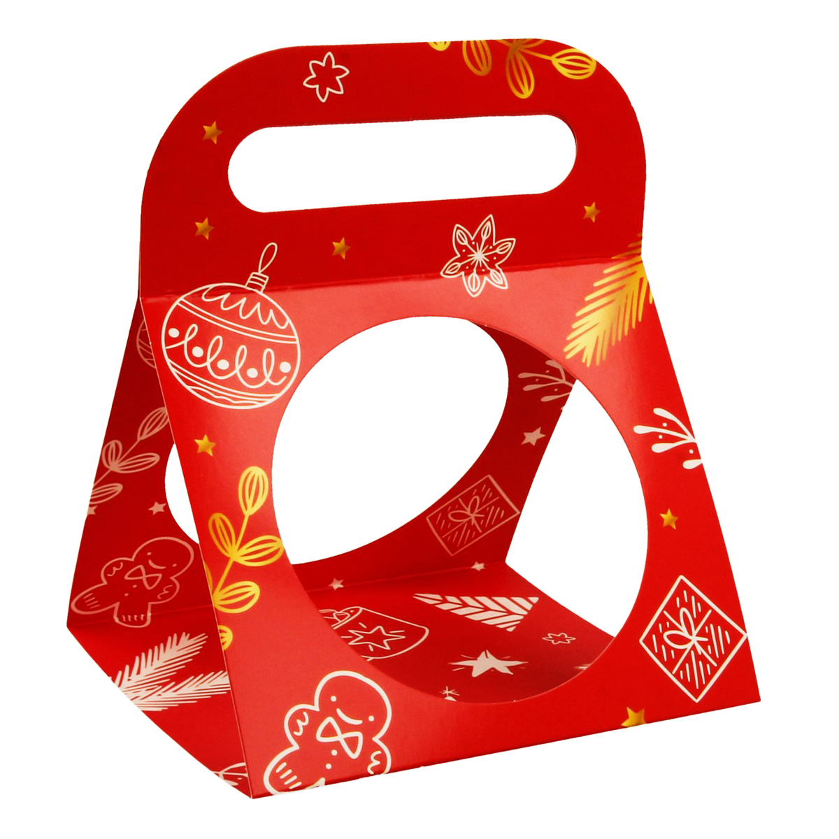 Размер изделия в собранном виде: высота с ручкой 15 см, ширина 10,5 см, глубина 11,2 см. В комплекс выходит сумочка, 2 круглые подложки под пирожные диаметром 8,5 см и 2 бирочки с пожеланиями: Мечты сбываются! Чудес в Новом году!