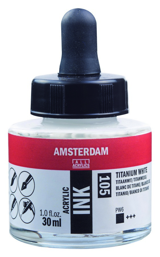 Amsterdam Ink выпускаются в устойчивых баночках по 30 мл с пипеткой для удобного использования и дозировки чернил.