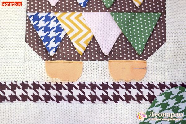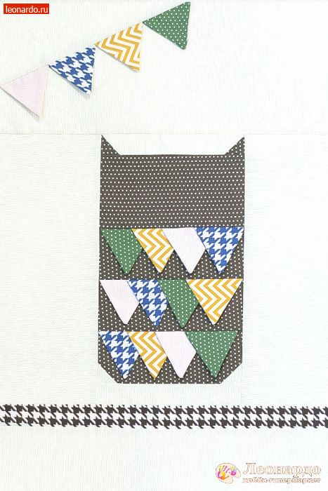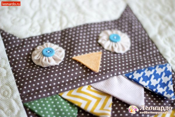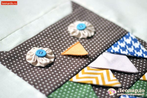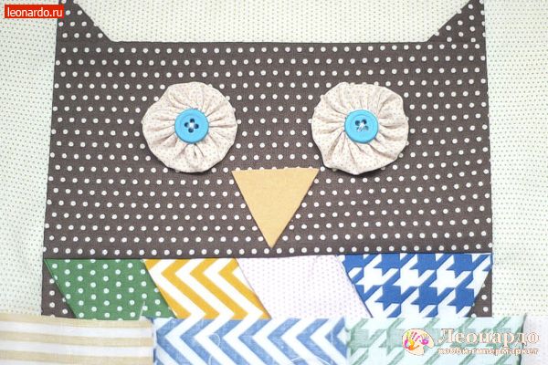 - по бокам Совы два прямоугольника из светлой фоновой ткани размером 6 х 13,5 "