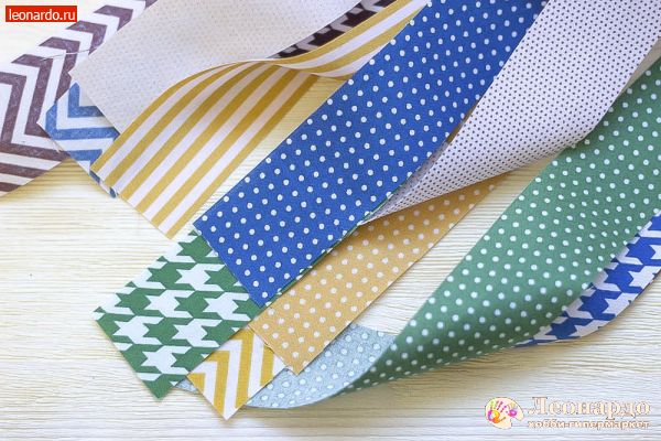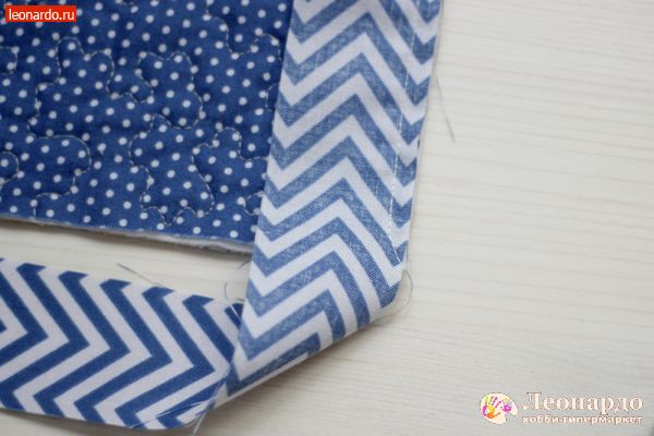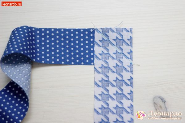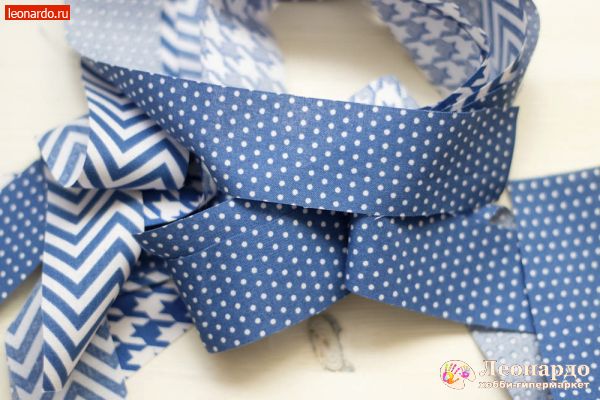 46. Из оставшихся тканей с синим принтом выкроим полосы шириной 1,5".