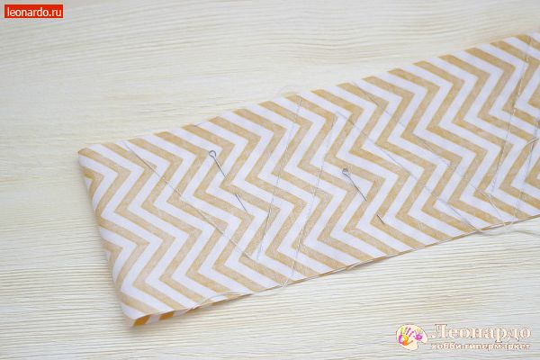 2. Сколем полосу и проложим машинную строчку строго по намеченным диагональным линиям. Внешние стороны оставим незашитыми.