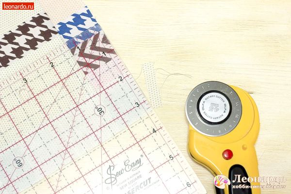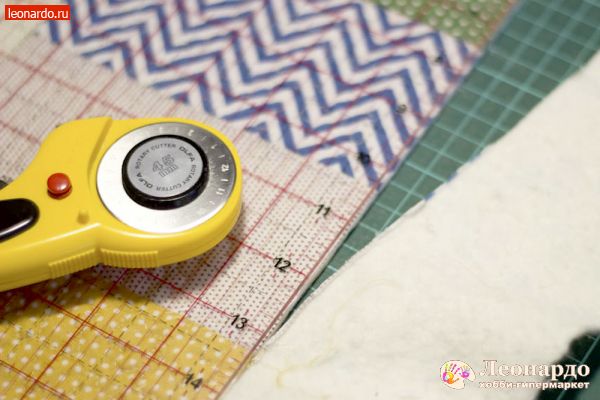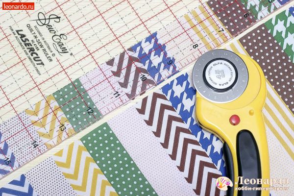5. Если необходимо выкроить полосы, отрежем их немного длиннее необходимого и уже после сшивания выровняем по краю.