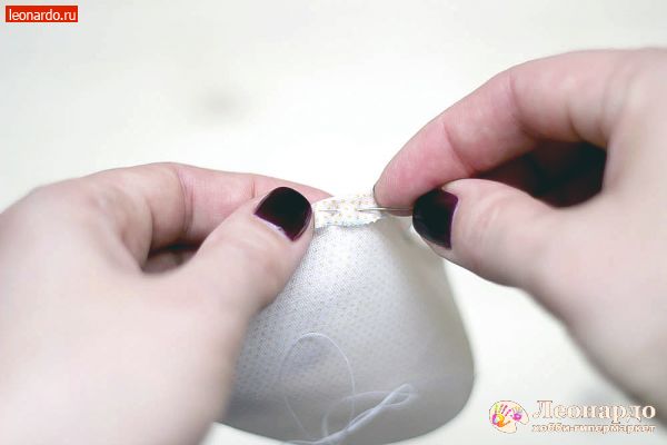 30. Аккуратно пришьем глаза голове, стараясь, чтобы стежки проходили под деталью.