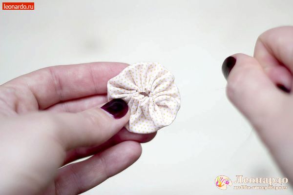 27. Вырежем деталь по кругу. Подогнув край ткани примерно на 3-4 миллиметра, соберем ее на нитку швом «вперед иголку».
