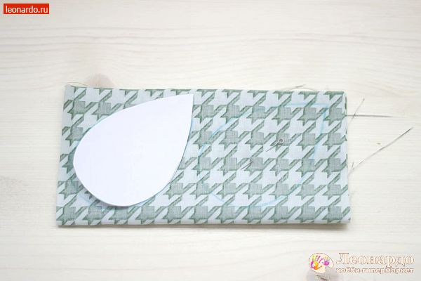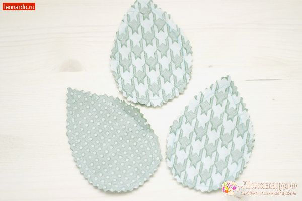 32. На сложенную вдвое ткань с зеленым рисунком с изнаночной стороны переведем контур по шаблону «лист».
