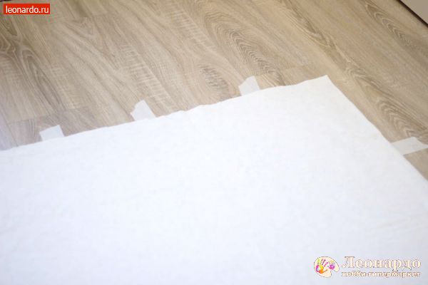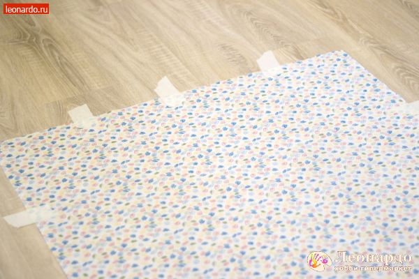 40. Разложим ткань для изнаночной стороны квилта на ровной поверхности лицевой стороной вниз. Немного натянув ткань, зафиксируем ее с помощью малярного скотча.