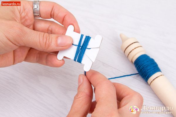 15. Намотаем нить с веретена на бобину для мулине «Gamma», арт.: LKK-40. Полученную нить можно использовать для вязания в одну нить. Однако чаще всего нить соединяют (ссучивают) для получения пряжи в две нити.