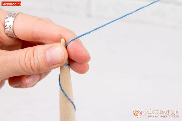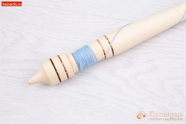 29. Получившуюся двойную нить завяжем снизу веретена.