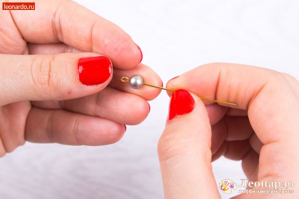 8. Нанижем бусину «Zlatka», арт.: FPB-01 на штифт с петлёй «Zlatka», арт.: DC-102, лишнее обрежем.