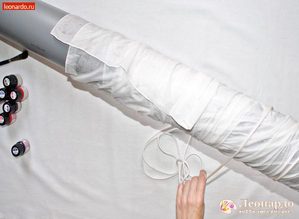 2. Перевязываем намотанный шелк веревкой диаметром около 5 мм. Концы веревки завязываем узелком.