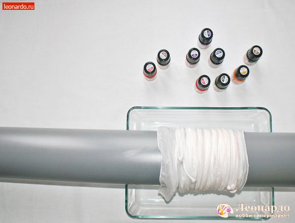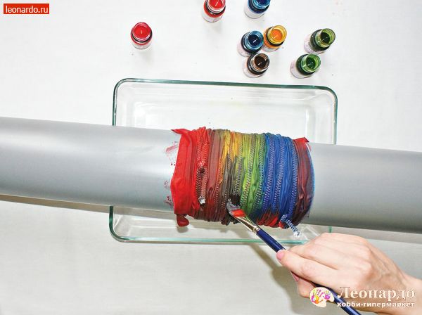 7. После того как краски высохли, разматываем веревку и аккуратно снимаем работу с трубы.