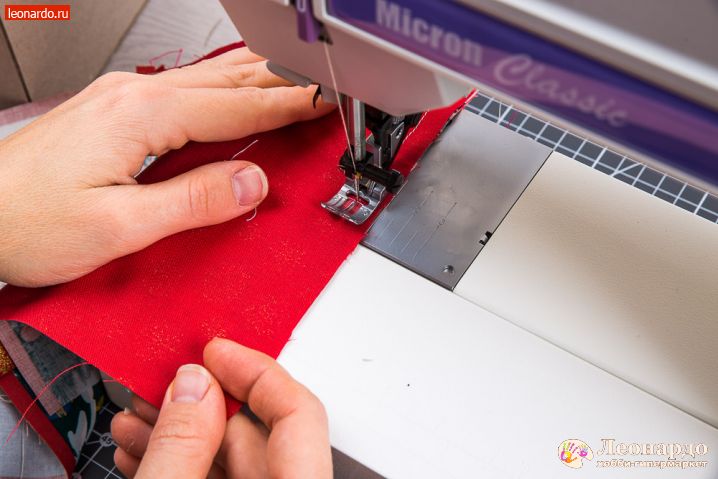 5. Стачиваем детали из ткани между собой вручную или на швейной машинке Micron Classic 1035 по длинным сторонам с припуском 0.7см.