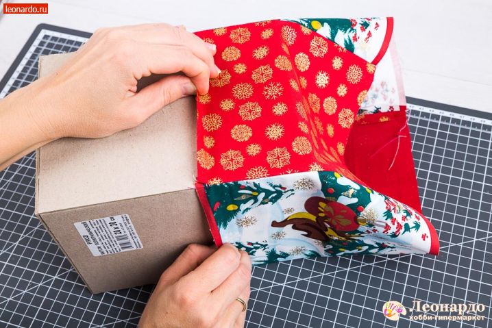 7. Готовую деталь натягиваем на ящик, совмещая стыки ткани с углами заготовки.
