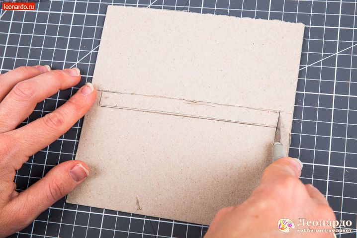 11. В оставшейся заготовке (15х16 см) при помощи макетного ножа Mr. Painter, арт. HKN прорезаем отверстие 2х13 см.