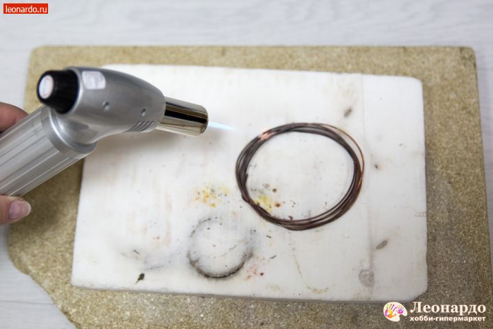 1. Перед началом работы обжигаем проволоку WW-art (арт. CW, ассорти 2 м d 0.4; 0.8; 1.2; 1.6) с помощью газовой горелки Micron (арт. GGP-400). Это позволит удалить с поверхности проволоки WW-art лаковое покрытие и сделать ее более мягкой.