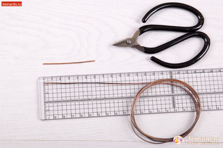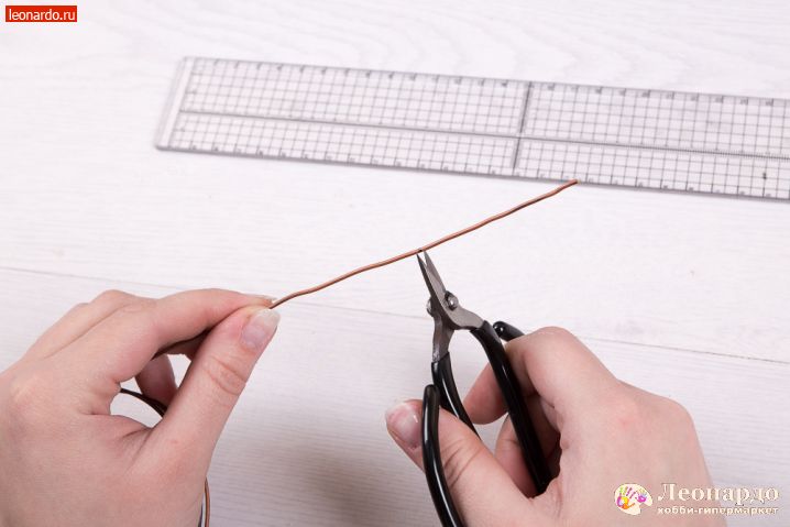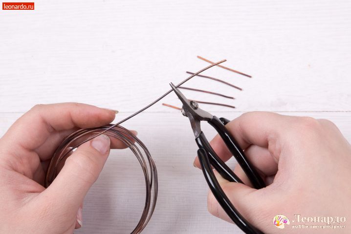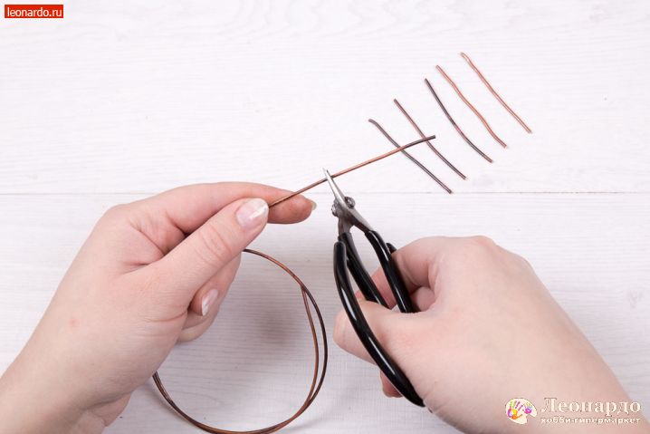 11. Приступаем к третьему составному элементу, который будет необходим, чтобы готовое изделие имело фиксированную форму и не гнулось. Из проволоки толщиной 1,2 мм из набора WW-art нарезаем ножницами для ювелирной резки металла ELVAS 3 отрезка длиной по 6 сантиметров.