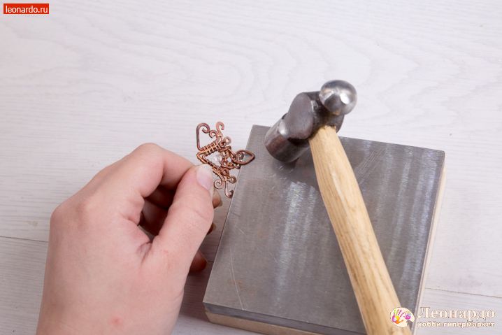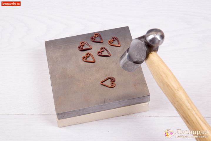 5. Аналогично выполним еще 5 сердечек. Молотком для чеканки ELVAS (арт. MSH-01) отбиваем на металлическом блоке ELVAS (арт. MBH-01) у каждой заготовки только верхние завитки.
