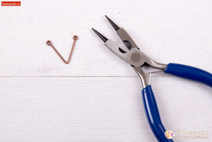 12. Каждую заготовку складываем пополам под углом 60 градусов, концы загибаем круглогубцами Micron в форме колец.