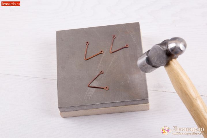 13. Отбиваем молотком для чеканки ELVAS на металлическом блоке ELVAS у всех трех заготовок только колечки.
