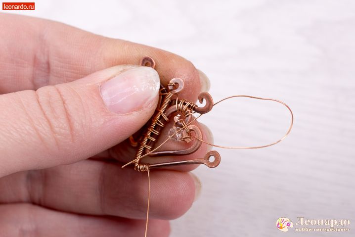 18. Продолжаем чередовать 4 витка на одну проволоку и 2 витка на три элемента, пока не дойдем до верхнего колечка.