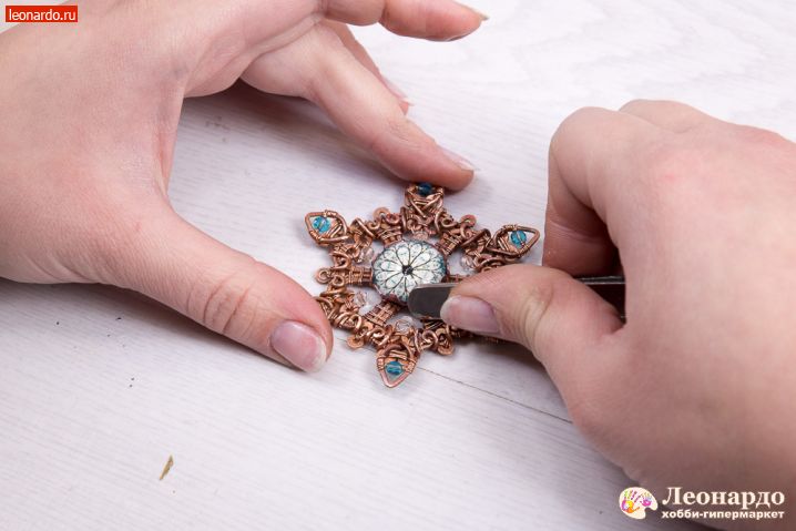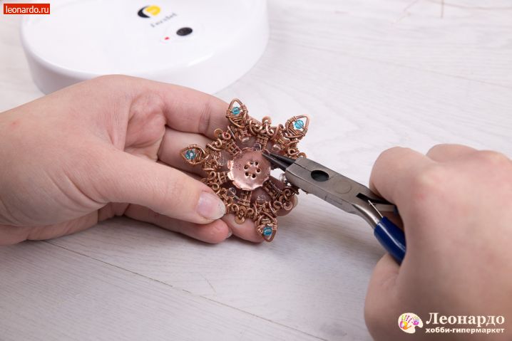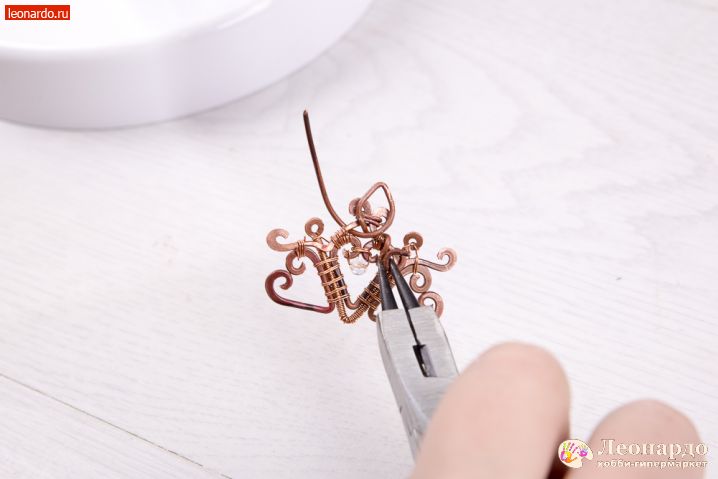 47. Для изготовления бейла для подвешивания из проволоки диаметром 1,2 мм из набора WW-art круглогубцами Micron делаем небольшую "восьмерку". Крепим её на изделие с помощью тонкогубцев Micron.