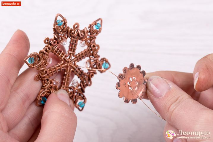 44. «Пришиваем» заготовку проволокой WW-art к снежинке, как пуговицу.