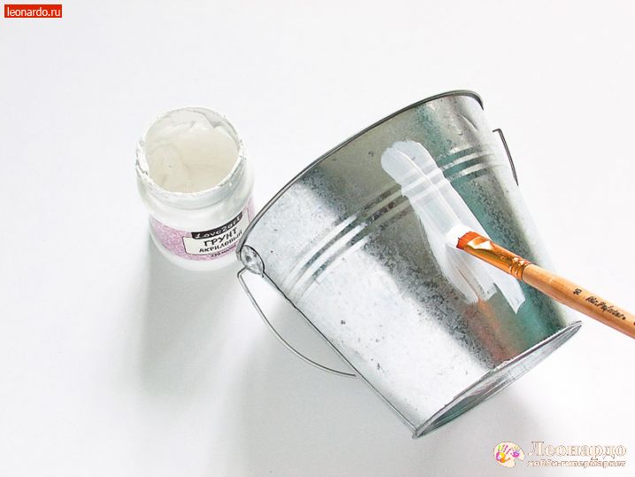 1. Плоской синтетической кистью Mr.Painter (арт. SBF 204-18) наносим грунт Love2art (арт. APW-230) на всю поверхность заготовки для декорирования - ведёрко Love2art (арт. MG-022). Дожидаемся полного высыхания.