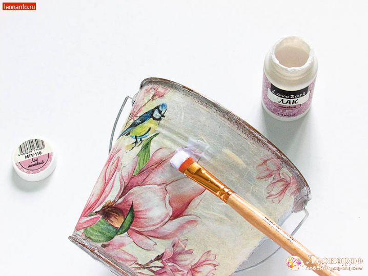 6. Кистью покрываем всю поверхность заготовки матовым лаком для декупажа Love2art (арт. MTV-110). Дожидаемся полного высыхания.