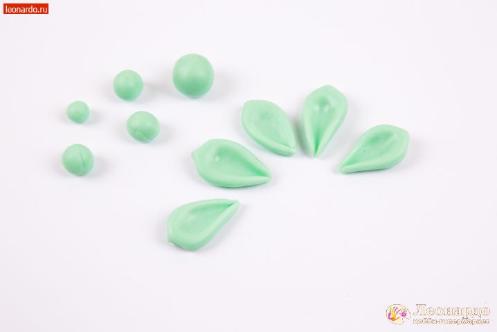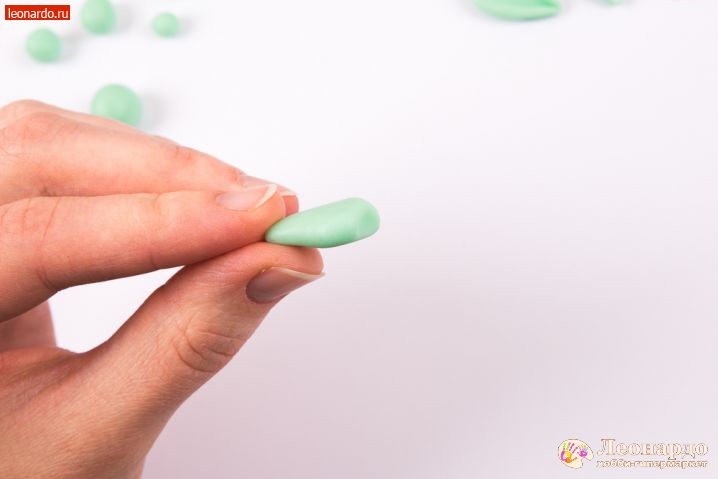 24. Также для декора колье пригодятся небольшие капельки из глины серого и серо-зеленого цветов. Серо-зеленый цвет можно получить путем смешивания серой и светло-зеленой глины.