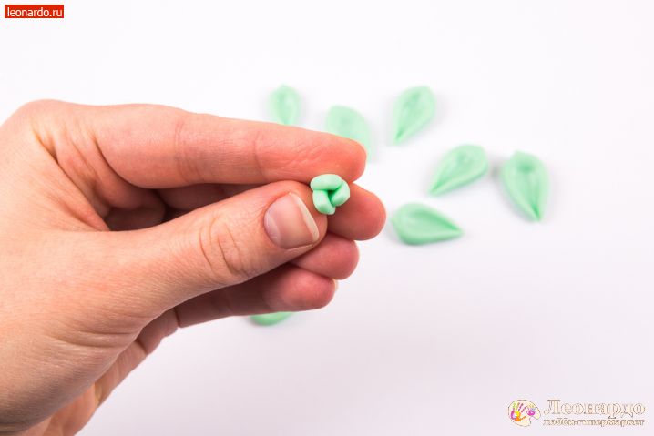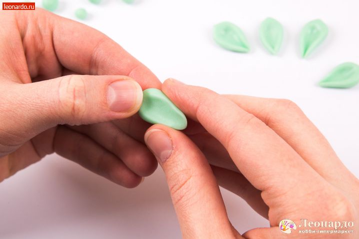 19. На этот раз сделайте форму лепестка другим способом. Середину оставляйте толстой, а края защипывайте пальцами, тем самым делая их тонкими.