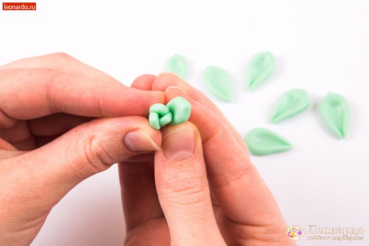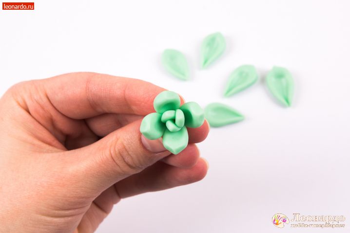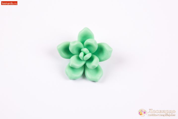 Для создания центрального цветка смешайте глину голубого цвета со светло-зеленым, в пропорции 1:1. В результате получится оттенок близкий к натуральному цвету суккулента.