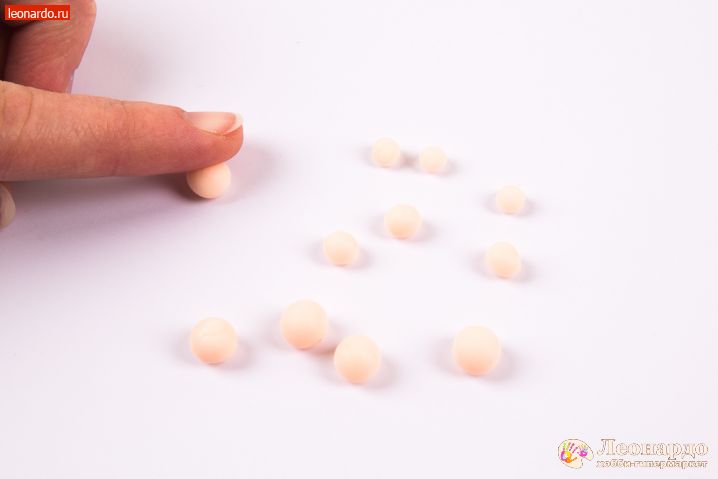 14. Как и в первом случае, сначала скатайте шарики: 3 маленьких, 3 средних и 5 больших.