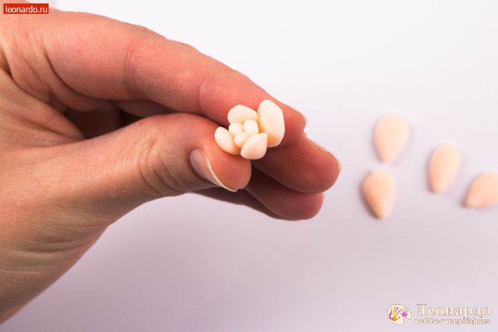 5. Получившуюся каплю расплющьте пальцами. Толщина лепестка должна быть около 5 мм.