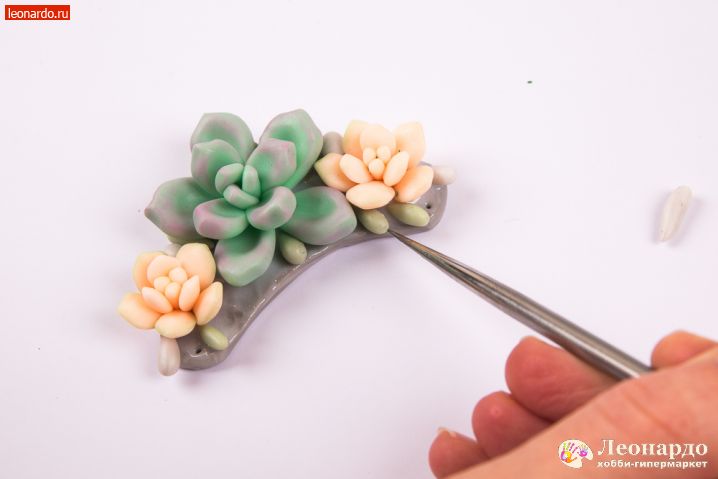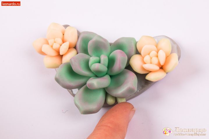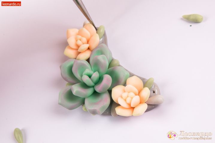 13. Для второго вида суккулентов смешайте глину персикового цвета с белой глиной, для получения более светлого оттенка.