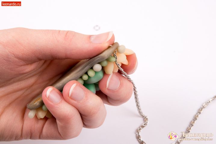 35. Другой край этой части цепочки прикрепите к колье с помощью соединительного кольца.