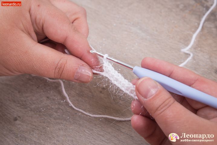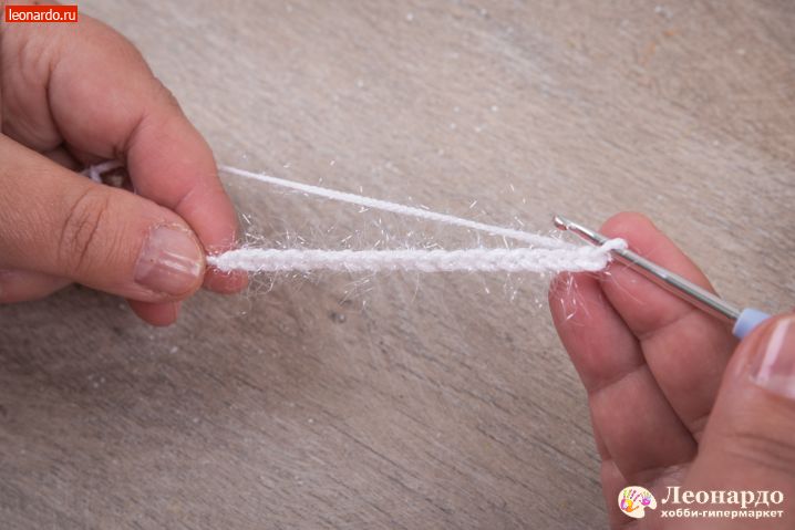 Из пряжи Adelia «BRILLIANT» №01 белый с помощью крючка для вязания с прорезиненной ручкой GAMMA (арт. RHP) провязываем 19 воздушных петель (вп).