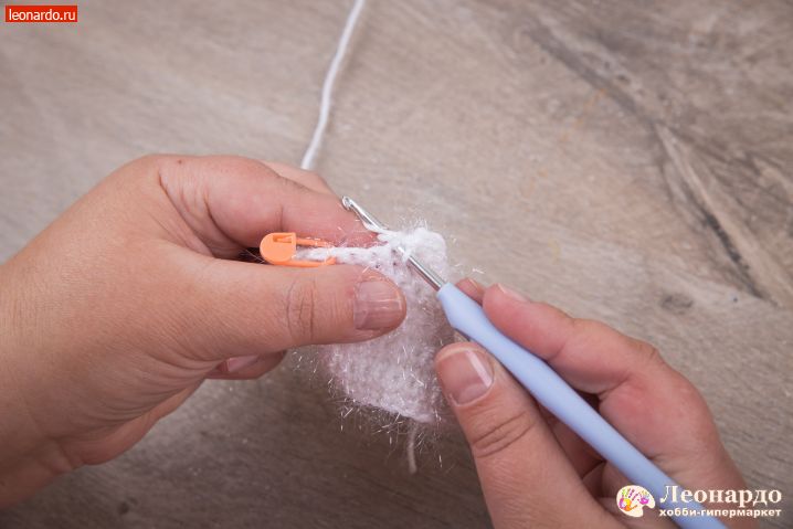 10. Захватываем следующую петлю слева от центра и провязываем сбн.