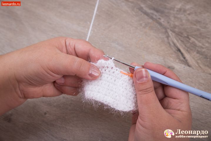 4. С 3 ряда по 6 ряды - делаем прибавки с двух сторон следующим образом: в начале провязываем 1 сбн в основание вп подъема и в конце ряда вяжем в одну петлю 2 сбн.