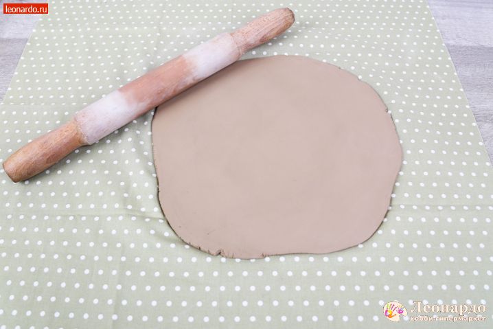1. Разомнем руками керамическую массу VISTA-ARTISTA Sculpt (арт. MAK-1). Раскатаем из нее на хлопковой ткани пласт толщиной 8 мм при помощи скалки.