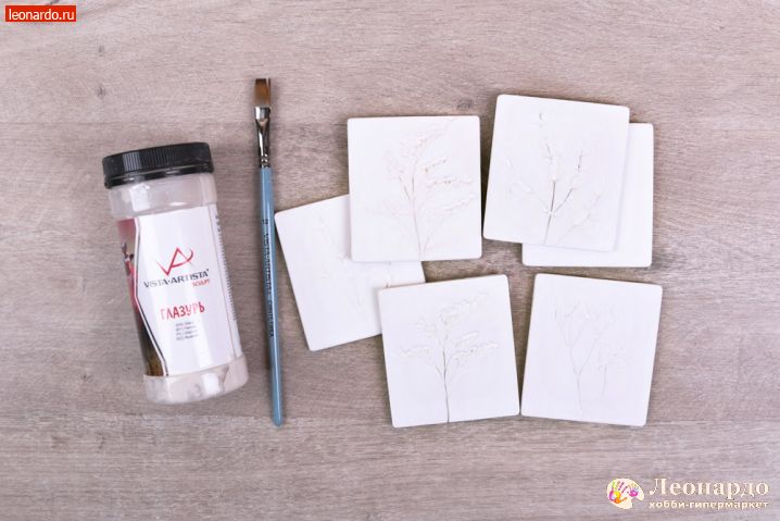6. Затем покроем верхнюю часть плиток белой глазурью VISTA-ARTISTA Sculpt (арт. GLZ-2), используя кисть VISTA-ARTISTA (арт. 50232-08) и опять обожжем в муфельной печи при температуре 1050°C.