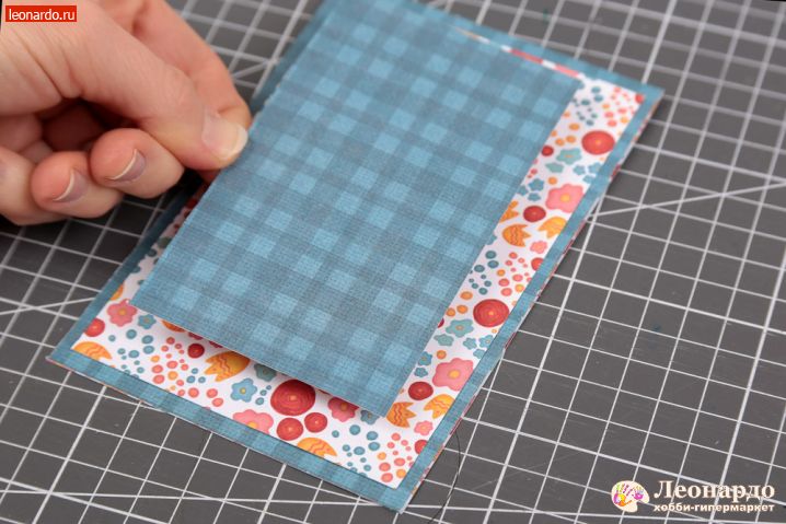 4. По центру среднего приклеим малый прямоугольник таким образом, чтобы принты чередовались.